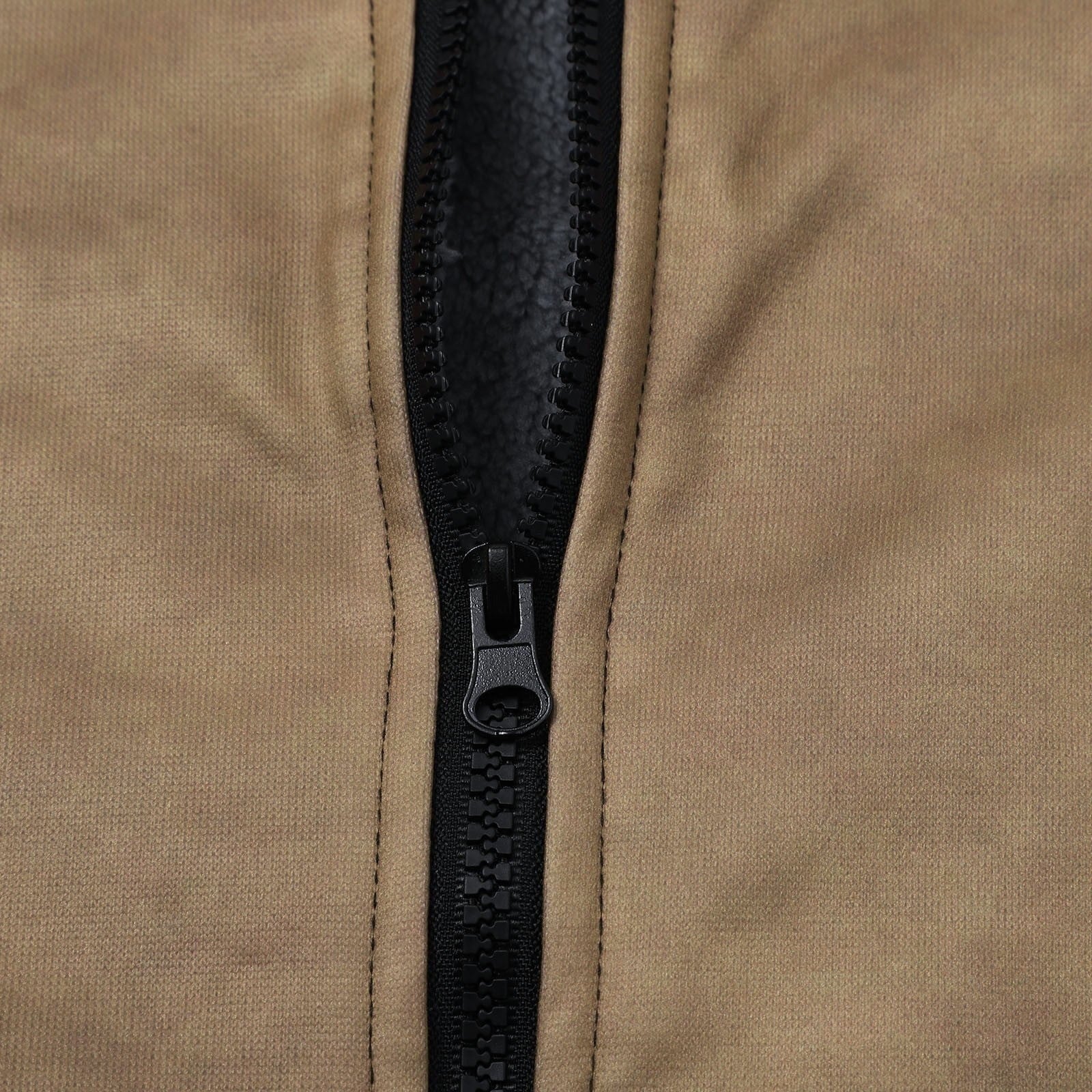 The jacket is crafted from a premium blend of Polyester and Cotton, featuring a quilted interior lining. It is soft to the touch, durable, and suitable for cold and transitional weather.