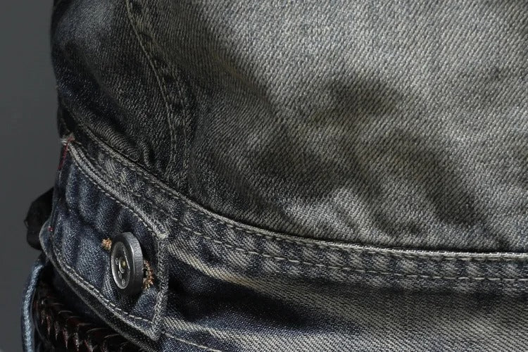 • 2. Denim with Character The distressed wash and firm construction deliver a timeless presence that only authentic denim can offer. Style: A retro-urban design that pairs effortlessly with everything.